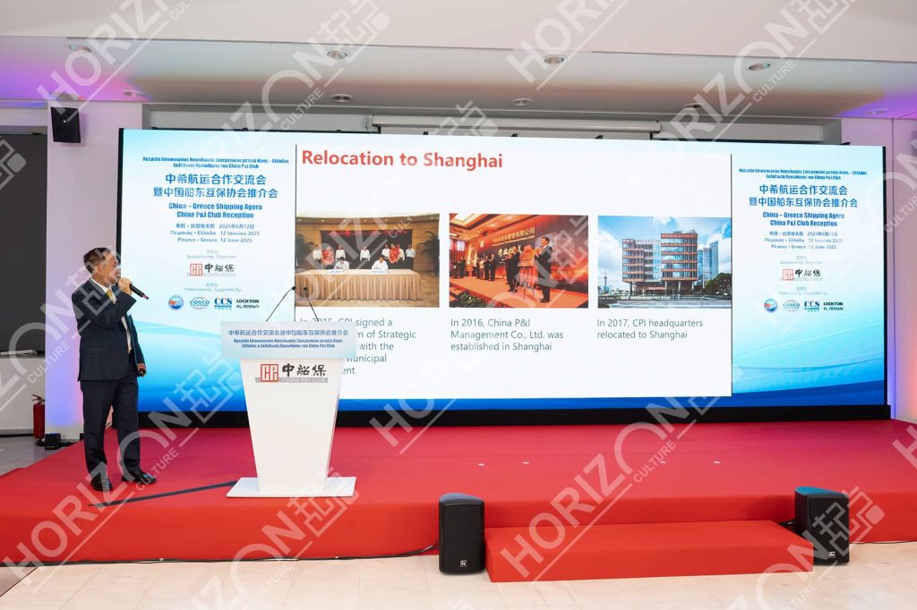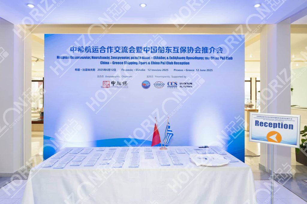 On June 12, 2025, the China–Greece Shipping Cooperation and Exchange Conference & China P&I Club Promotion Event was successfully held at the Port of Piraeus, Greece. Distinguished guests included Mr. Fu Xuyin, Vice Minister of Transport of China; Mr. Kassafados, Deputy Minister of Climate Crisis and Civil Protection of Greece and Member of the Hellenic Parliament; and Mr. Fang Qiu, Chinese Ambassador to Greece. The Horizon Culture team was fully responsible for the on-site planning and execution of the event, providing strong organizational and technical support to ensure the conference’s smooth and successful completion.