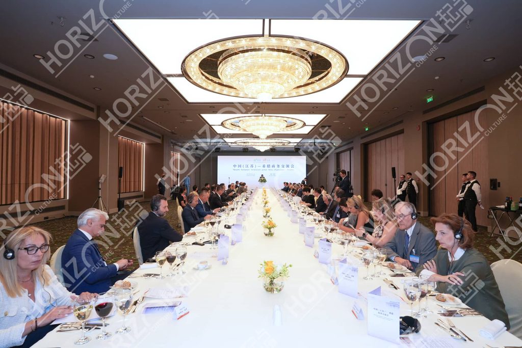 From June 22 to 24, 2025, Mr. Xin Changxing, Secretary of the Jiangsu Provincial Committee of the Communist Party of China, led a delegation from Jiangsu Province on an official visit to Greece. The Horizon Culture team was responsible for the setup, venue design, technical support, and on-site execution of the events, including the “Symposium on Jiangsu’s Investment and Cooperation with Central and Eastern European Enterprises” on June 22, the “China (Jiangsu) – Greece Business Exchange Conference”, and the “Enterprise Matchmaking Session” on June 23. These efforts demonstrated our team’s professionalism and efficiency in delivering high-quality event services.